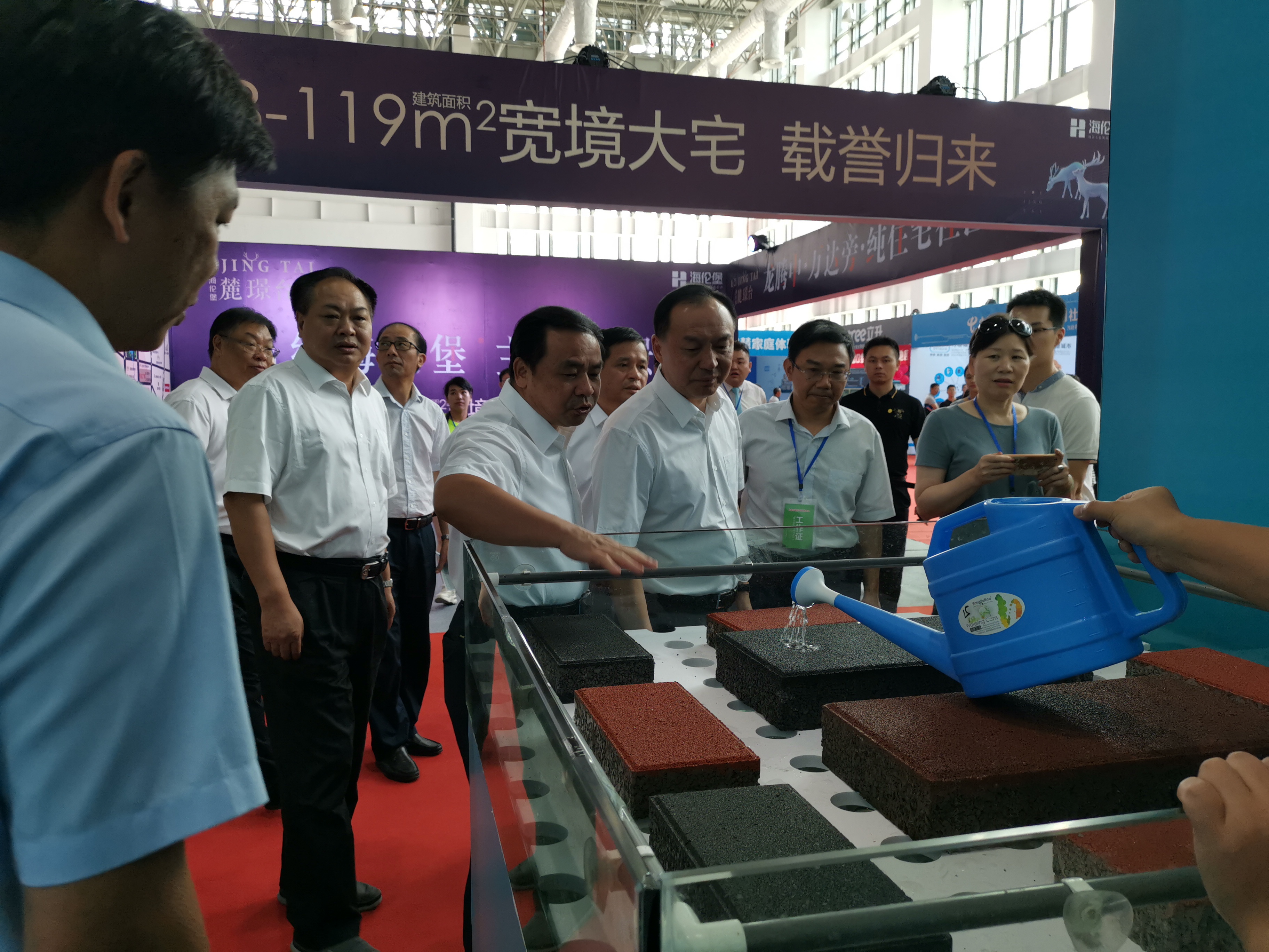 8月16日—18日,龍巖天潤龍城新型建材有限公司參加龍巖市建筑產(chǎn)業(yè)發(fā)展大會建筑新型材料展,展會上公司發(fā)放了公司產(chǎn)品宣傳冊,播放公司產(chǎn)品宣傳片,擺放公司產(chǎn)品樣品并在現(xiàn)場進行透水效果演示,市委許維澤書記一行在巡視展館中饒有興致地觀看聽取了公司產(chǎn)品性能情況介紹,對透水建材產(chǎn)品贊譽有加。