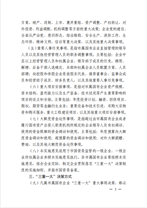 關(guān)于進(jìn)一步規(guī)范市屬國(guó)有企業(yè)貫徹落實(shí)“三重一大”決策制度實(shí)施意見(jiàn)(國(guó)資黨委[2020]21號(hào))