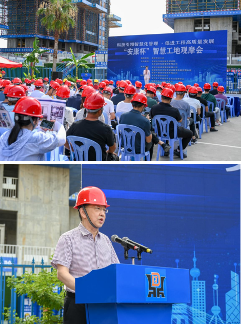 為推動我市房屋市政工程智慧工地建設,促進建筑施工企業(yè)質量安全管理標準化、信息化、智能化發(fā)展,7月20號上午,由市住建局和城發(fā)集團主辦,市政集團及福建九鼎集團共同承辦的全市智慧工地觀摩會在龍欣小區(qū)安置房二期Ⅱ標段項目舉辦,市住建局二級調研員王健蒞臨觀摩會致辭,市住建局、城發(fā)集團及所屬企業(yè)相關工程技術人員約100人參加。觀摩會還吸引了來自龍巖市建筑業(yè)協(xié)會、龍巖市工程建設質量安全管理協(xié)會、福建船政交通職業(yè)學院等有關專家到場指導。