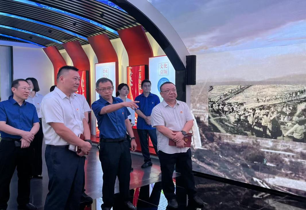 移動公司黨委書記、總經(jīng)理謝桂華及黨員代表參觀水務集團文化展廳